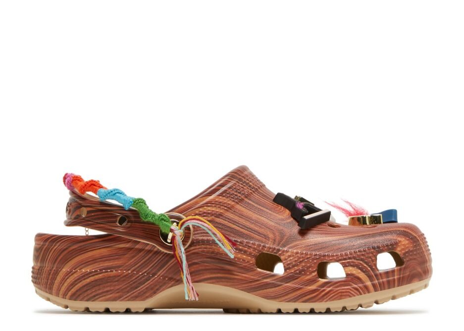 De Amerikaanse singer-songwriter werkt samen met een schoenenbedrijf uit Colorado om de SZA x Crocs Classic Clog ‘Woodgrain’ voor dames te presenteren. Het bovenwerk van Croslite-schuim heeft een houtnerfpatroon dat verwijst naar de ringen rond een boom. Ademende ventilatieopeningen zorgen voor een luchtig gevoel. Gepersonaliseerde SZA-details zijn onder andere een gouden ketting en een eigenzinnige reeks Jibbitz-bedels, waaronder een vishaak, een amethist en een yin-yangsymbool. De hielband is draaibaar voor een eenvoudig aanpasbare pasvorm.