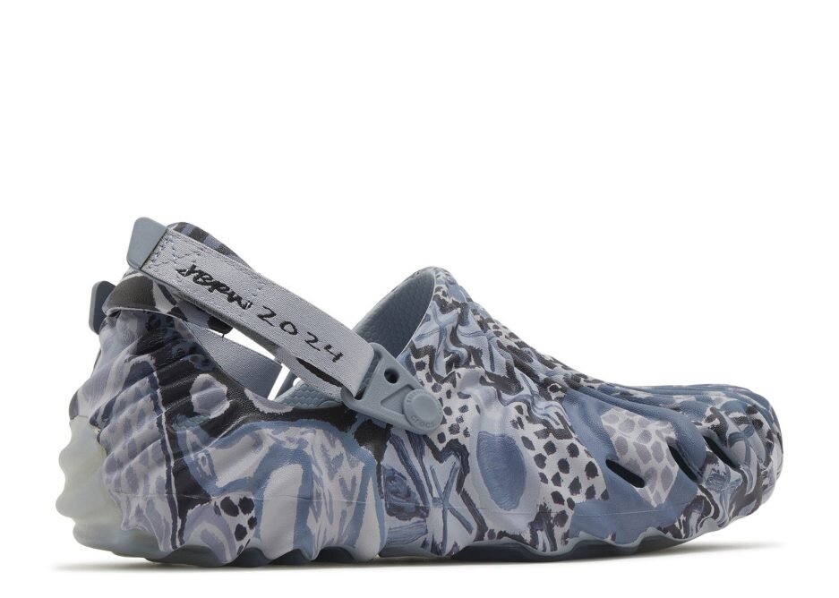 Salehe Bembury bundelde de krachten met de in Los Angeles gevestigde kunstenaar Jonas Wood om de Crocs Pollex Clog ‘Art Friends Thumbs Up Good Job’ te ontwikkelen. De oplage is beperkt tot 1000 paar en het lichtgewicht, leigrijze schuimbovenwerk toont Woods stippeltechniek, met zwart-witte accenten. Een draaibare hielband zorgt voor een goede grip, terwijl ventilatieopeningen in de voorvoet de ademende werking verbeteren. Gegoten, concave ribbels vormen Bembury’s vingerafdrukontwerp voor een kenmerkende look.