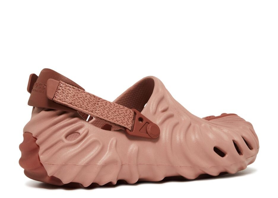 De Salehe Bembury x Crocs Pollex Clog ‘Kuwata’ instappers hebben een gedempte koraaltint, geaccentueerd door Bembury’s iconische vingerafdrukontwerp. Ventilatieopeningen zijn strategisch geplaatst op plekken die het warmst zijn voor een luchtig gevoel, terwijl een verstelbare nylon hielband het bovenwerk stevig vastzet. De buitenzool is voorzien van wervelende, concave ribbels voor grip in elke richting.